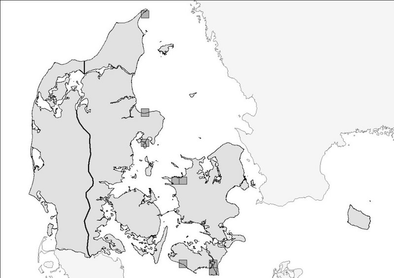 Tabel 1 Oversigt over det samlede antal lokaliteter, hvor arten er eftersøgt og fundet samt antal 10 x 10 km kvadrater med positive lokaliteter i de tre programperioder.