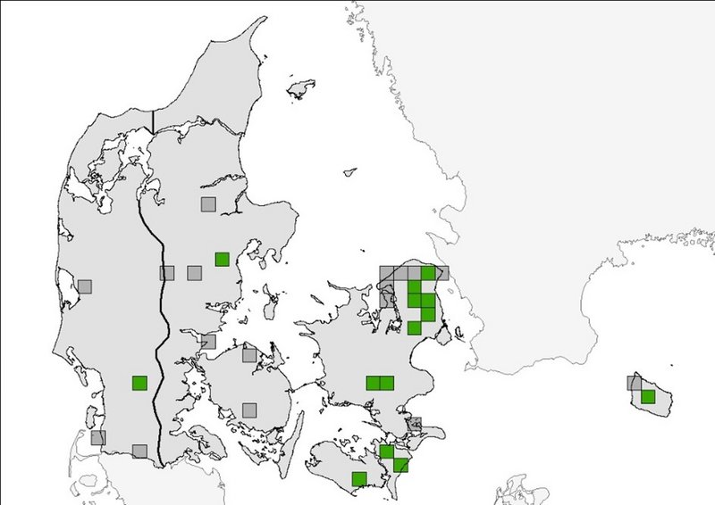 Tabel 1 Samlede antal lokaliteter og UTM-kvadrater med forekomst af stor kærguldsmed i Danmark i 2020 og 2021.