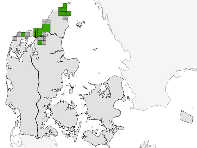| Bilag II | Næsten truet (NT) | Stærkt ugunstig | Moderat ugunstig | Registreret på 16 UTM kvadrater | Negativ | Negativ |