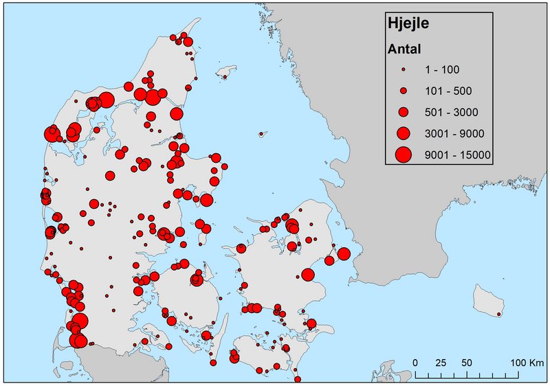 Tabel 1. Antal af hjejle optalt i Danmark i perioden 2009 til 2019.