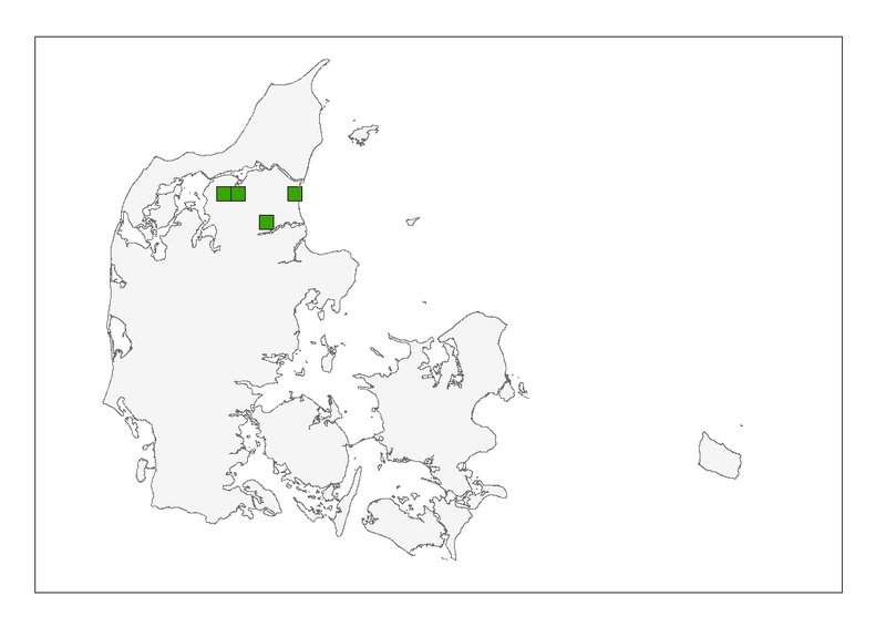Der blev ved den seneste NOVANA-overvågning i 2016 registreret fem sikre ynglepar i Danmark, alle i Nordjylland (Figur 1, Tabel 1).