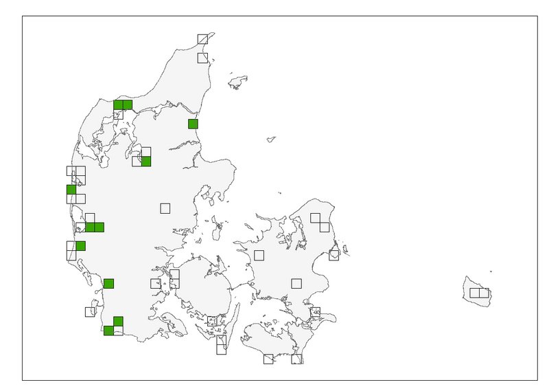 Plettet rørvagtel blev i 2021 eftersøgt i de fuglebeskyttelsesområder, hvor arten er på udpegningsgrundlaget (Figur 1).