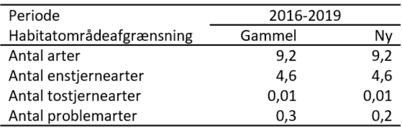 Der er i gennemsnit registreret 0,2 problemarter i bøg på mor. Stor nælde er, som den eneste problemart ud over de invasive arter (Tabel 9110.103), registreret i 2,6 % af dokumentationscirklerne.