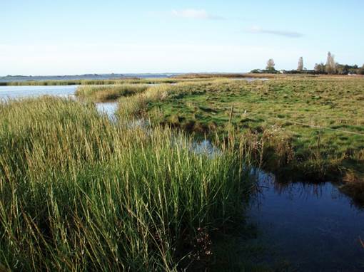 Vadegræs findes typisk uden for de indhegnede arealer på vandsiden af strandenge (1330). Overvågningsstation ved Sondrup Strand.